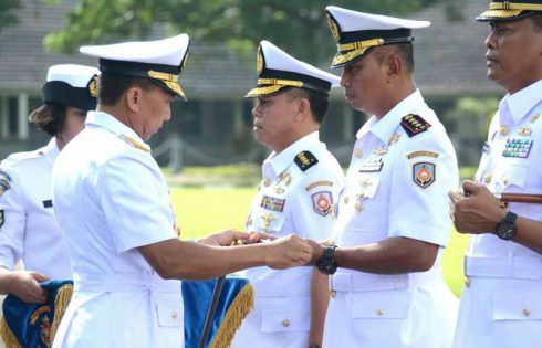 Di depan undangan serah terima jabatan Satuan Kerja di bawah Kobangdikal, lembaga pendidikan TNI AL,…